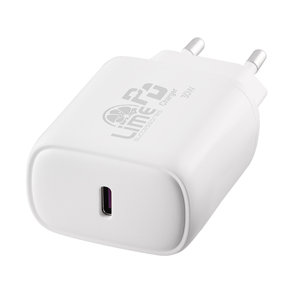 LIME TYPE C PD 3.0 SUPER FAST TRAVEL QC 3.0 LTC30W 30W 5V 4.0A /9V 3.4A/12V 2.5A WHITE